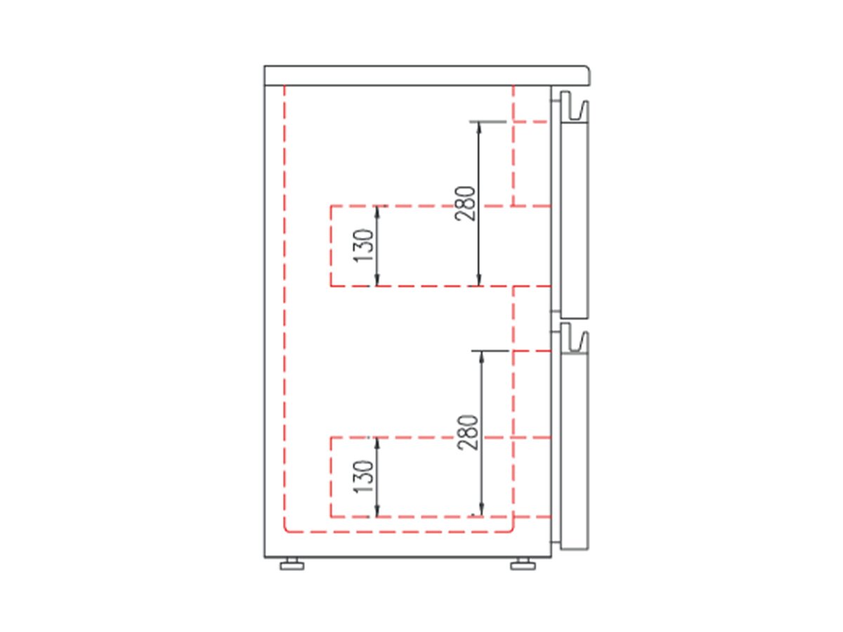 - höhenverstellbare Füße (Gesamthöhe: 820 - 880 mm)