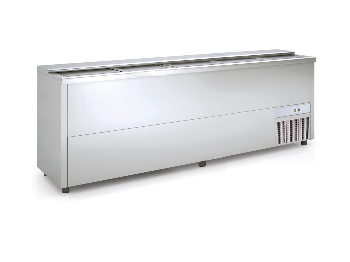 Die vaiotec TOPLINE 550 Getränkekühltruhe mit Schiebedeckeln aus Edelstahl vereint Effizienz und Design in einem. Ausgestattet mit einer mechanischen Temperatursteuerung und einer statischen Kühlung, garantiert diese Truhe optimale Lagerbedingungen für Ihre Getränke. Die robuste Konstruktion aus Edelstahl AISI 304 und die kompakte Bauweise machen die Truhe zur idealen Wahl für jede Gastronomieumgebung.