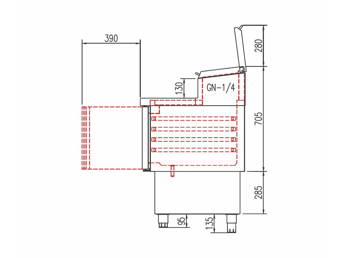 - Kühlraum geeignet für GN 1/1 Behälter, Roste, etc.