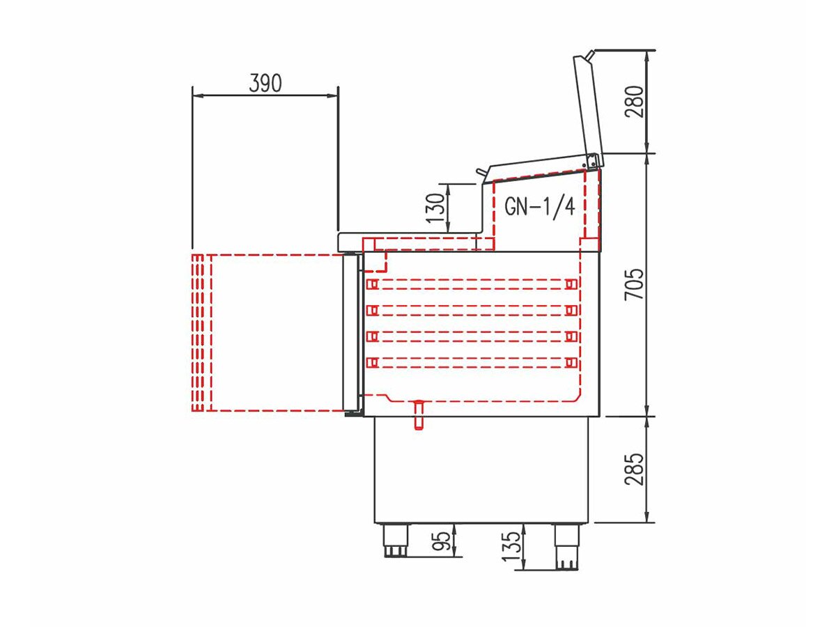 - Kühlraum geeignet für GN 1/1 Behälter, Roste, etc.