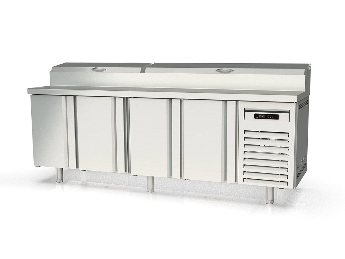 Die vaiotec TOPLINE 700 Belegstation mit Türen und einem eckigen Glasaufsatz bietet Platz für GN1/4 Behälter. Die energiesparende Umluftkühlung und das digitale Dixell-Thermostat mit Alarmfunktion garantieren optimale Kühlleistung. Dank der Granitarbeitsplatte und des robusten Edelstahlgehäuses ist die Station besonders langlebig und pflegeleicht.