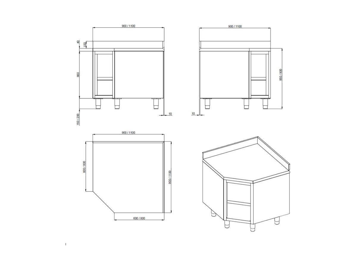 Hochwertiger vaiotec TOPLINE 700 Eckarbeitsschrank offen mit Aufkantung für Ihre Küche