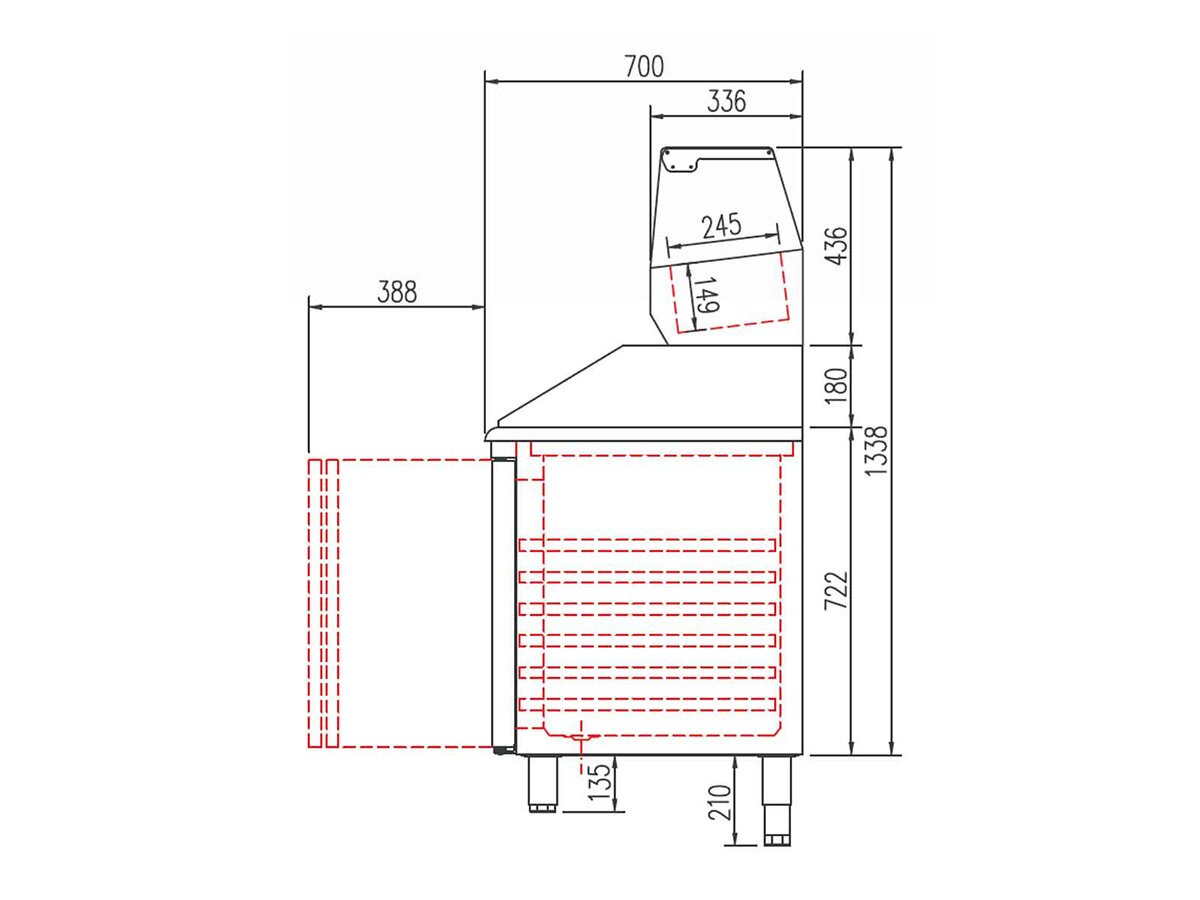 Der vaiotec TOPLINE 700 Pizzatisch bietet eine effiziente Lösung für die Zubereitung und Lagerung Ihrer Pizza-Zutaten. Mit drei Türen, einem praktischen Kühlaufsatz für GN1/4 Behälter und einer edlen Arbeitsfläche aus grauem Granit, kombiniert dieser Tisch Funktionalität mit Langlebigkeit. Ausgestattet mit digitaler Temperaturkontrolle, energiesparender Umluftkühlung und leicht zu reinigenden abgerundeten Ecken im Innenraum, setzt dieser hochwertige Edelstahltisch neue Maßstäbe in Ihrer Küche.