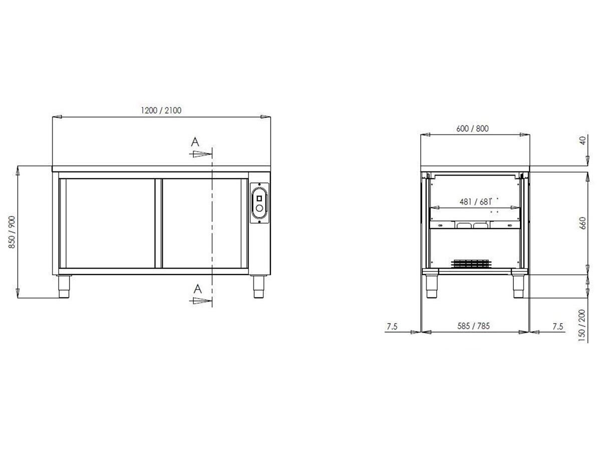 Praktischer vaiotec TOPLINE 700 Wärmeschrank mit 2 Schiebetüren in Breite 1200 mm für Ihre Küche