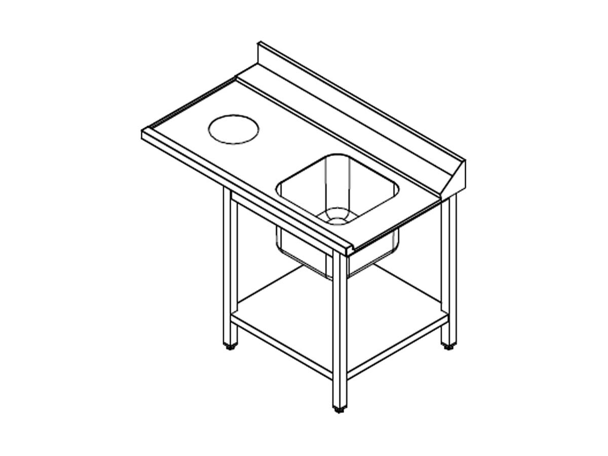 Robuster vaiotec TOPLINE 700 Zulauftisch mit Becken rechts und Abfallloch links in verschiedenen Breiten