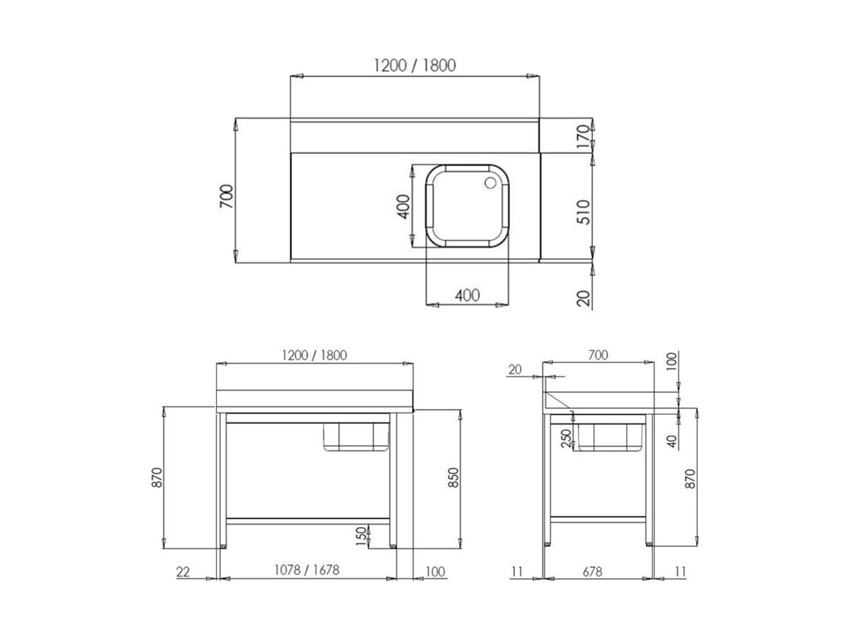 - Arbeitsfläche aus hochwertigem Edelstahl AISI 304 gefertigt