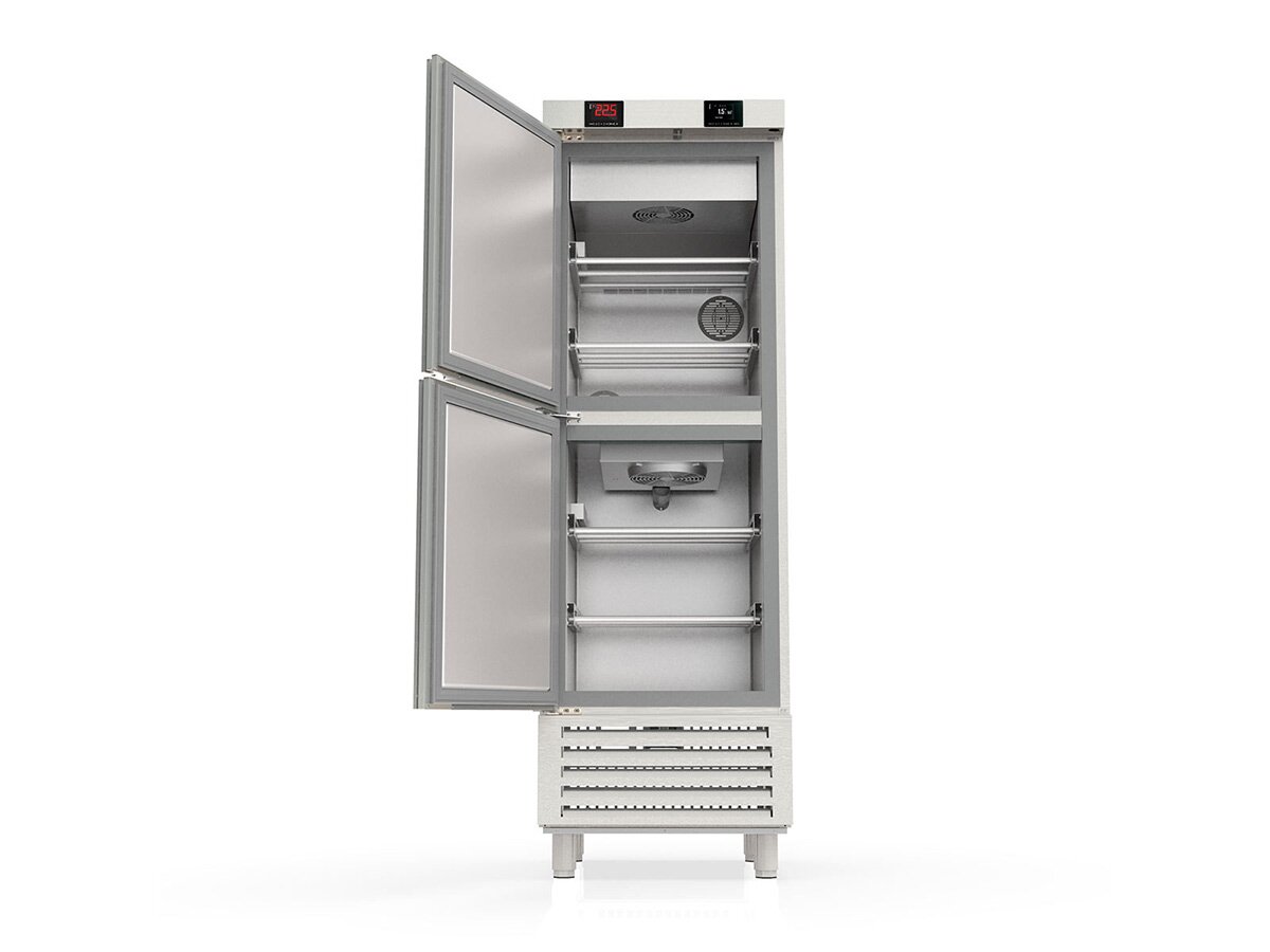 Der vaiotec TOPLINE Reifeschrank bietet ideale Bedingungen zur Trockenreifung von Fleischwaren. Mit präziser digitaler Temperatur- und Luftfeuchtigkeitskontrolle sowie einer energiesparenden Umluftkühlung, die bei geöffneter Tür stoppt, sorgt der Schrank für eine optimale Reifung. Das moderne Design, die programmierbaren Trocknungsphasen und der Innenraum aus Edelstahl machen den Reifeschrank perfekt für die professionelle Gastronomie.