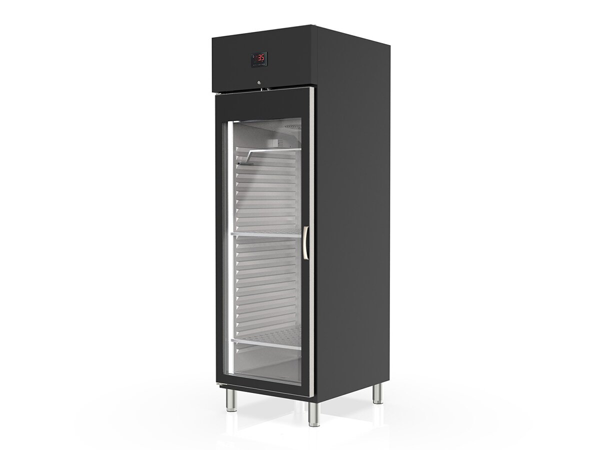 - 1 abschließbare Glastür mit Dreifachverglasung, selbstschließend und magnetverriegelt